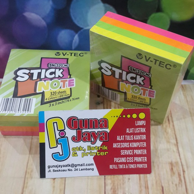 251024 | SP V-TEC STICK NOTE SN 320 MC . Merek:V-tec . Tipe:Stick note 4 warna . Stick note Kotak Neon Colour V-tec terdiri dari 4 warna-warni cerah.berukuran 76x76 mm dapat digunakan untuk menandai tugas atau note catatan. . Isi 320 lembar 4 warna × @80 lembar Note: Mohon tanyakan ketersediaan barang terlebih dahulu Terimakasih Real Pict ^^HR PELAYAN DAN KUALITAS : ✅ Kami selalu menggunakan bahan pilihan yang berkualitas dan terbaik, sehingga customer nyaman untuk menggunakan produk dari KAMI. ✅ Memberikan pelayanan yang baik, cepat, dan ramah, serta bertanggung jawab terhadap seluruh paket pelanggan ✅ Begaransi apabila barang yang diterima tidak sesuai atau cacat ✅ 100% PRODUK ORIGINAL ✅ BEST PRICE & GOOD QUALITY ✅ FOTO REAL PICT DARI TOKO KAMI ✅ JANGAN LUPA BERIKAN PENILAIAN DAN BINTANG 5NYA YA ⭐⭐⭐⭐ GARANSI : ✅ Tidak perlu khawatir, kami berikan GARANSI RETUR BARANG tapi berlaku untuk tidak selesaikan pesanan dan tidak memberikan rating/penilain jelek. ✅ Silahkan LANGSUNG CHAT SEBELUM MEMBERIKAN RATING dan REVIEW ✅ Kami akan melayani Anda dengan senang hati. INFORMASI TOKO : ✅ Pengiriman Senin - Sabtu ✅ Minggu admin Libur tp masih bs order seperti biasa ✅ Jam Kerja Admin 08.00-18.00WIB ✅ Fast Respond di jam kerja ✅ Pesanan masuk lebih dari jam 16.00 akan diproses hari berikutnya ✅ Silahkan kirim pesan jika ada hal yang ingin ditanyakan mengenia produk, warna, maupun stock ✅ Jangan lupa follow dan like produk untuk mempermudah dalam pencarian produk dan produk terbaru setiap kami upload NOTE: ✅ wajib untuk menyertakan bukti berupa foto ataupun video saat unboxing paket. Tanpa bukti kami tidak terima alasan komplain atau returan apapun. ~~>>>> Kepuasan pelanggan adalah tujuan utama kami >>>>> Terima Kasih Atas Kunjungan Anda RESELLER & DROPSHIPER WELCOME