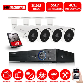 HKIXDISTE 5MP CCTV Surveillance Kit 5.0MP Security Camera System 4CH DVR 5MP Video Output Kit 40m Night Vision Camera HDMI P2P