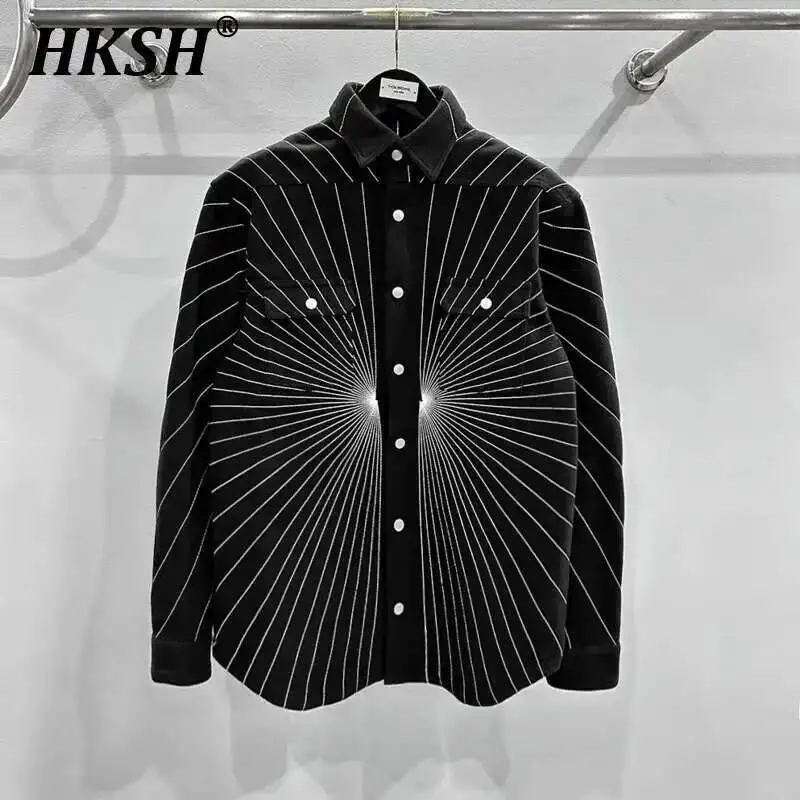HKSH Spring Autumn New Streetwear Men's Tide Dark Laser Embroidery Shirt Jacket Button Woolen Fashion Punk RO Style Coat HK2878