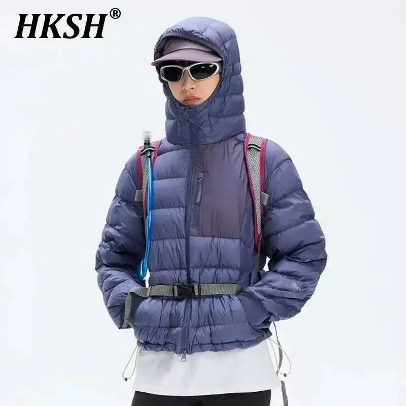 HKSH Outdoor Light Sport Color Contrast Hooded Down Jacket Women's Winter Mountain Leisure Waterproof Climbing Cotton Coat H2887