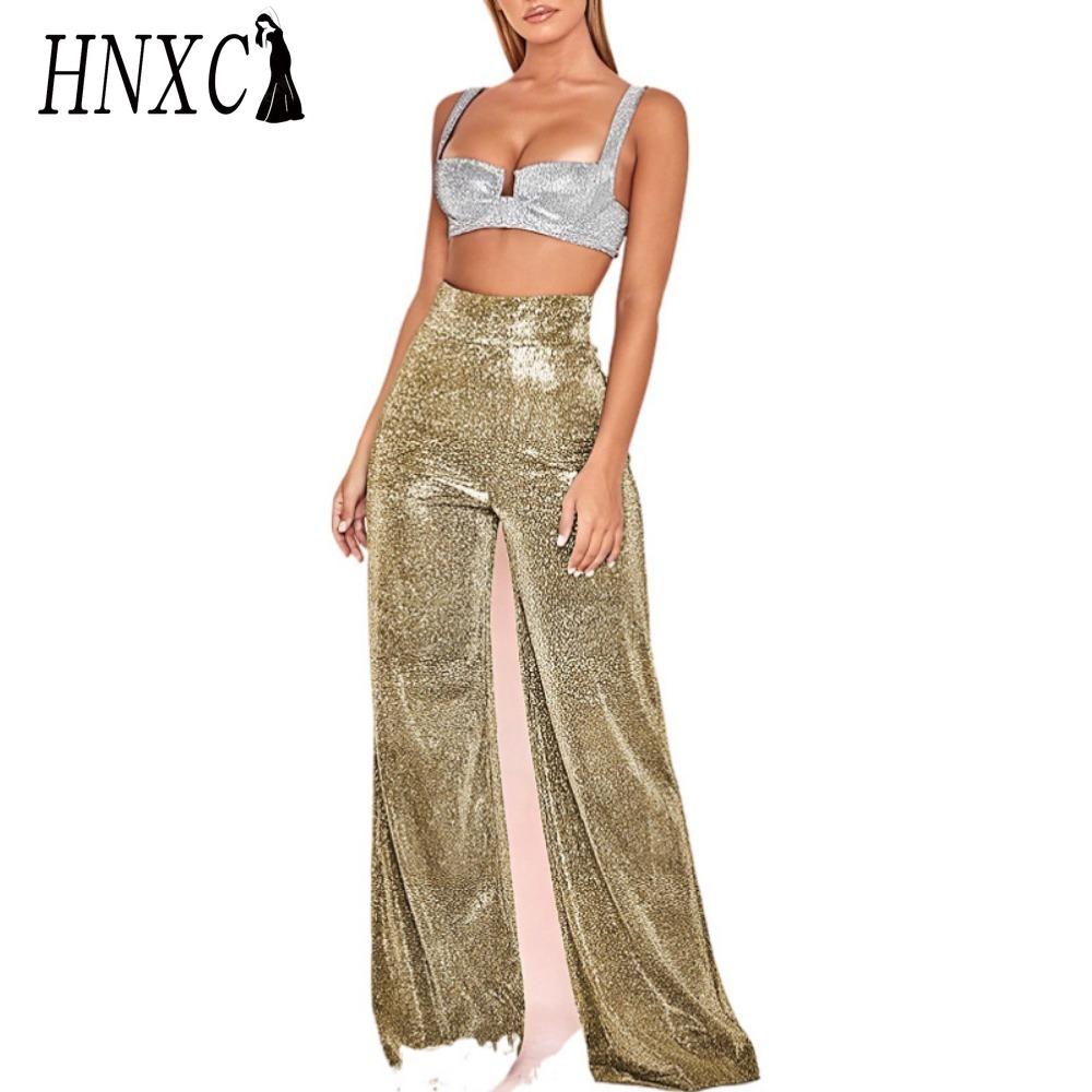 Женские брюки HNXC Блестящие однотонные Брюки с высокой талией Весна Осень Темперамент Свободные Прямые Брюки с широкими штанинами Повседневная одежда S золотой