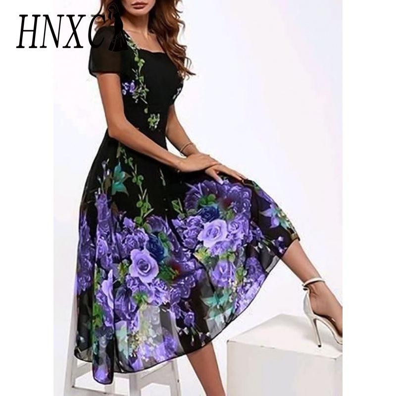HNXC Летнее женское элегантное вечернее платье с цветочным принтом, U-образным вырезом и короткими рукавами XXXL