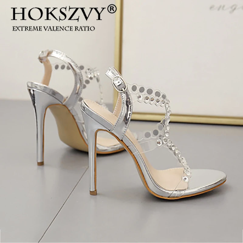 HOKSVZY 2020 Летняя мода прозрачные женские туфли на тонком каблуке большой размер полые высокие каблуки женские сандалии CWF