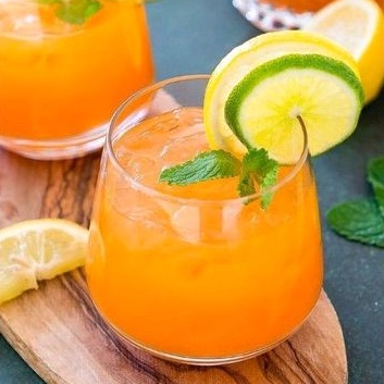Orange lemonade ini merupakan minuman perpaduan jeruk dan lemon, dengan rasa manis segar yang didapat dari jus jeruk dan asam segar yang didapat dari lemon.