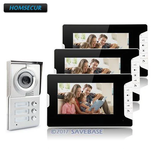 HOMSECUR Apartment Video Door Phone Intercom System 7" Monitor Camera For 3 Families Use