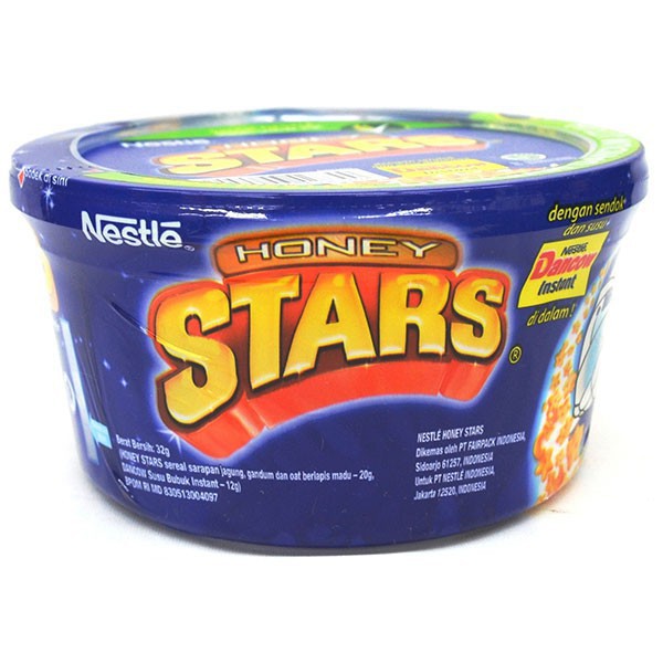 Sereal sarapan gandum dan jagung berlapis madu, lengkap dengan Susu Dancow di dalam kemasannya dan dapat dinikmati langsung dengan air normal atau dingin