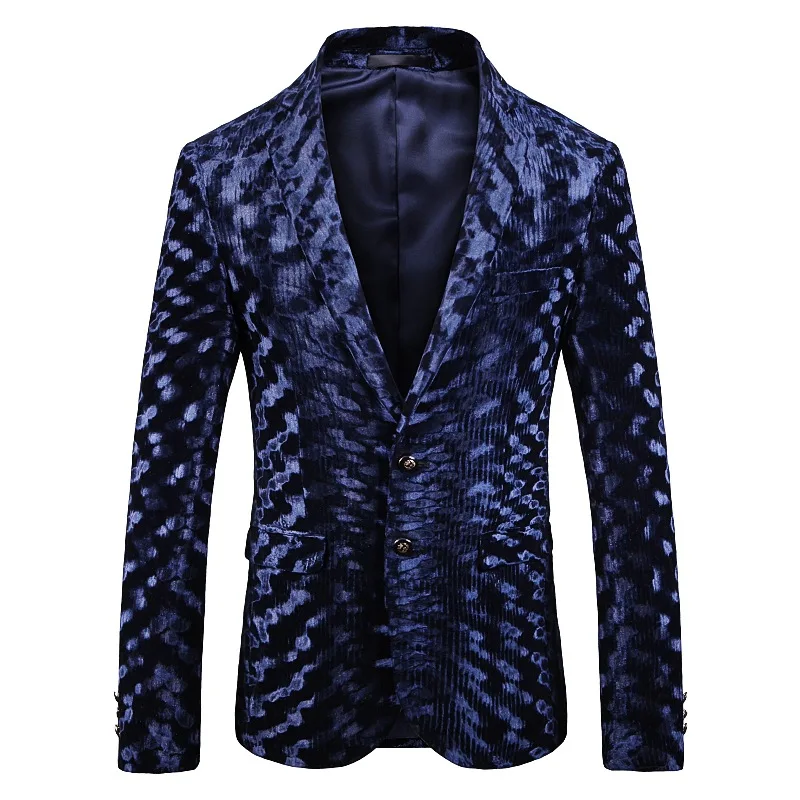 HOO [2024 мужской модный блейзер с принтом, Молодежный бархатный жаккардовый блейзер