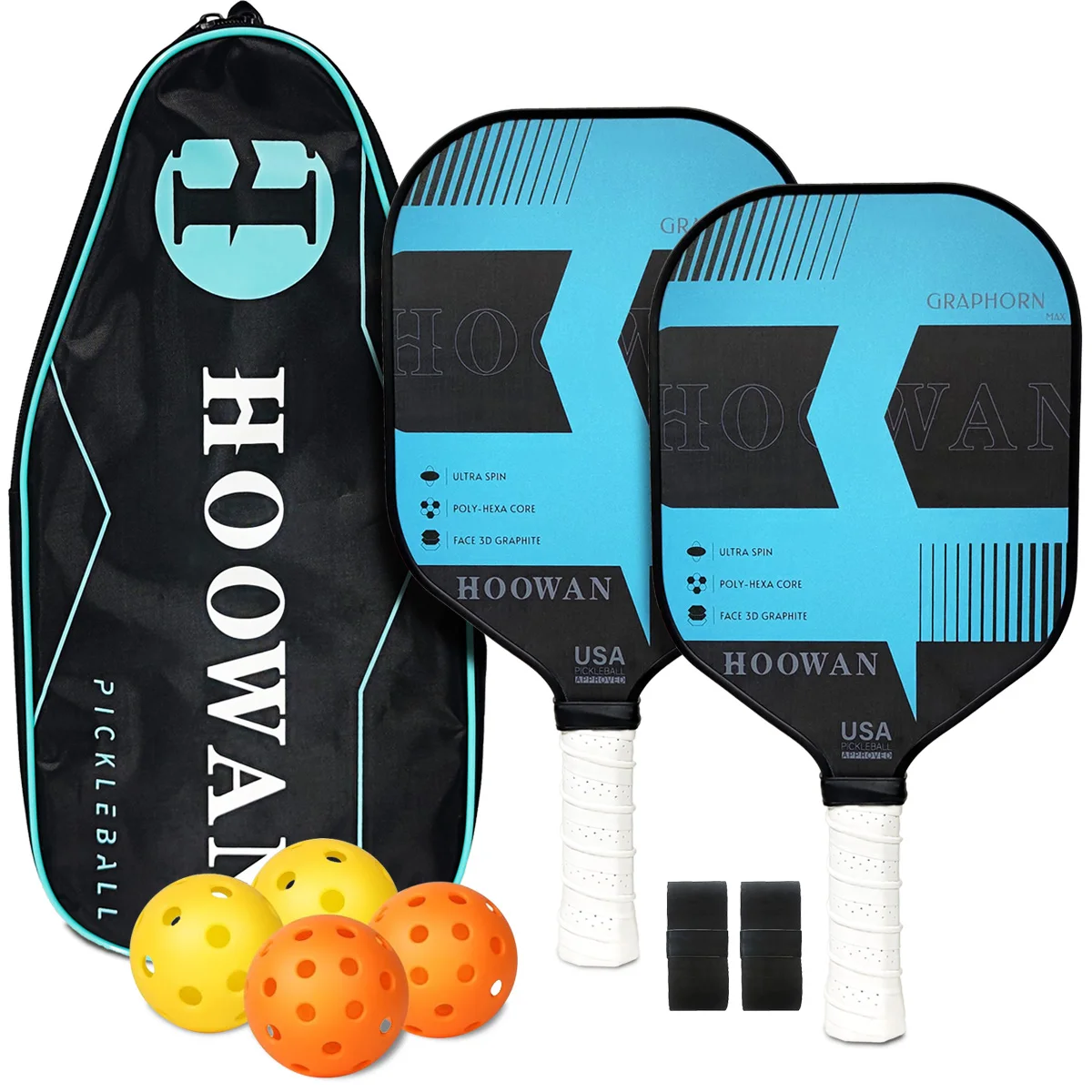 HOOWAN Pickleball Paddle Set T700 Raw Carbon Friction Surface USAPA Pickle Ball Racket Graphite Face 16MM Poly-hexa Core