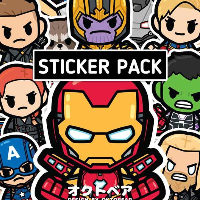 Sticker pack Avengers EndGame terdiri dari 3 varian Pack. Geser gambar untuk detail karakter.