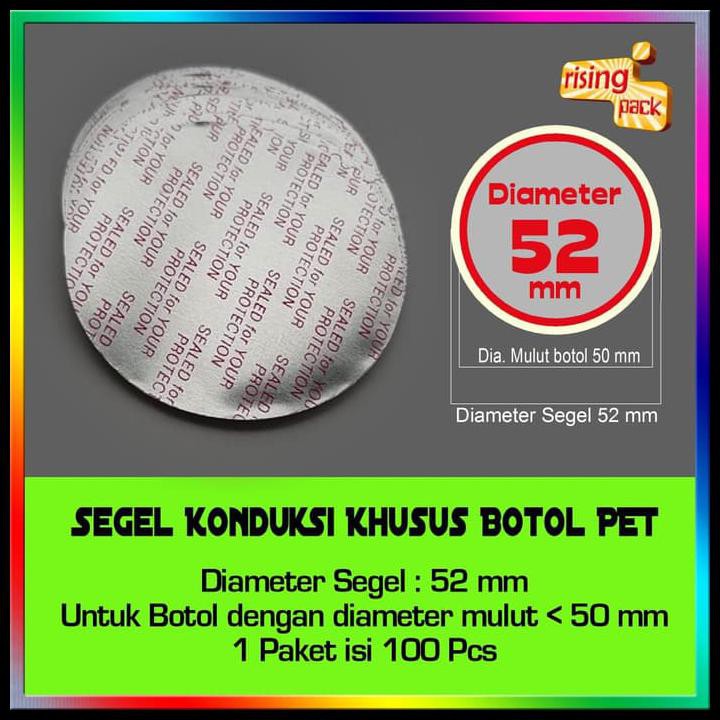 Segel aluminium foil untuk kemasan botol PLASTIK PET yang ukuran diameter mulut botol 5 cm (50 mm).