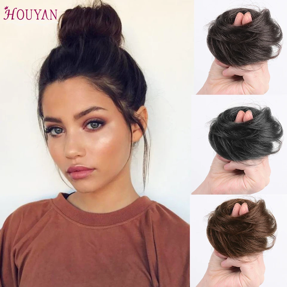 HOUYAN, пушистый черный шиньон на шнурке, аксессуары для волос, 1 шт., наращивание волос, человеческие волосы, прямые волосы, пучок, кольцо для во...