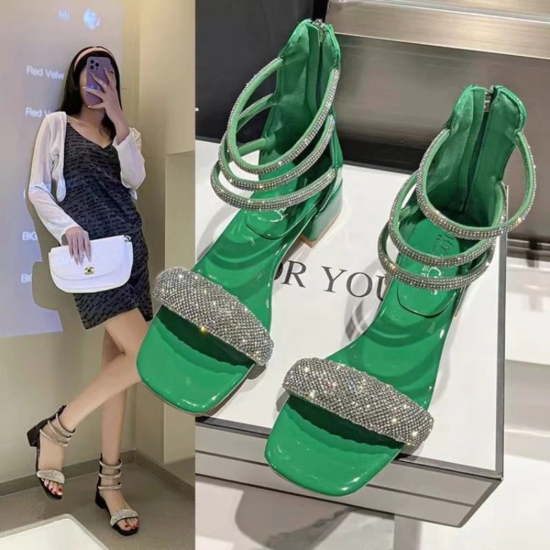 Женские босоножки в римском стиле, однотонные повседневные сандалии на квадратном каблуке, с молнией сзади и открытым носком, на массивном каблуке, лето 2023 Удобные и сексуальные сандалии на высоком каблуке