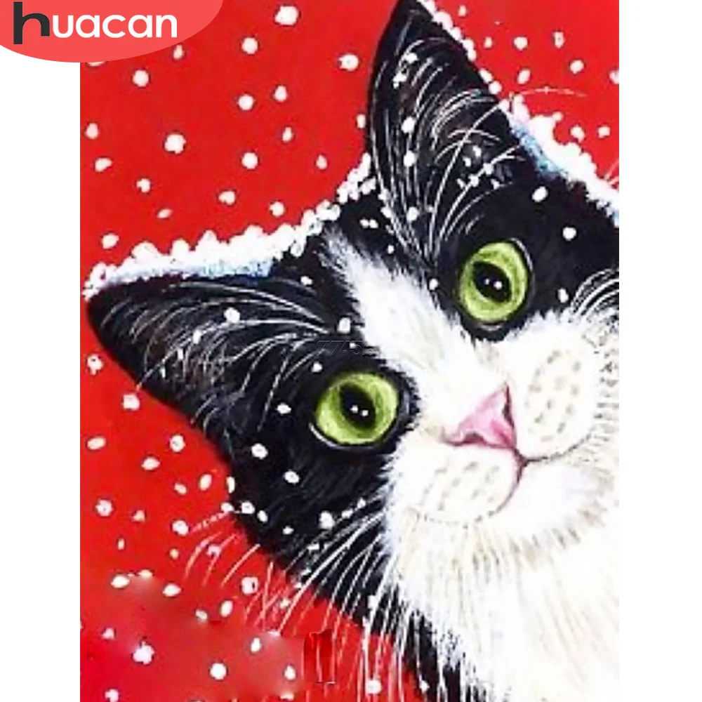 HUACAN DIY алмазная живопись кот животное 5D полная Алмазная вышивка снег изображение мозаики стразами рукоделие
