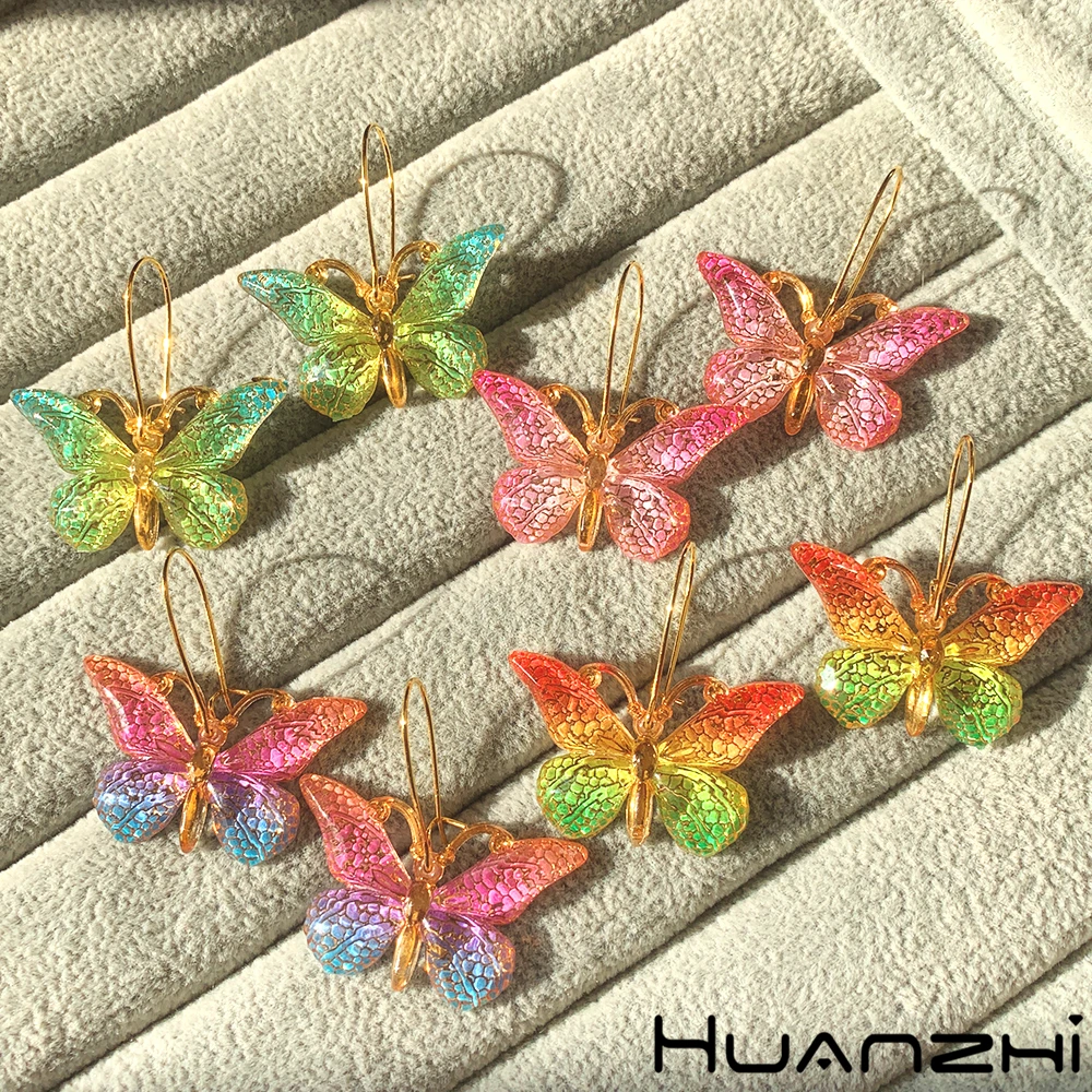 HUANZHI 2022 новые милые Romatic Разноцветные серьги Стразы с бабочками для женщин и девочек ювелирные изделия для вечерние аксессуары