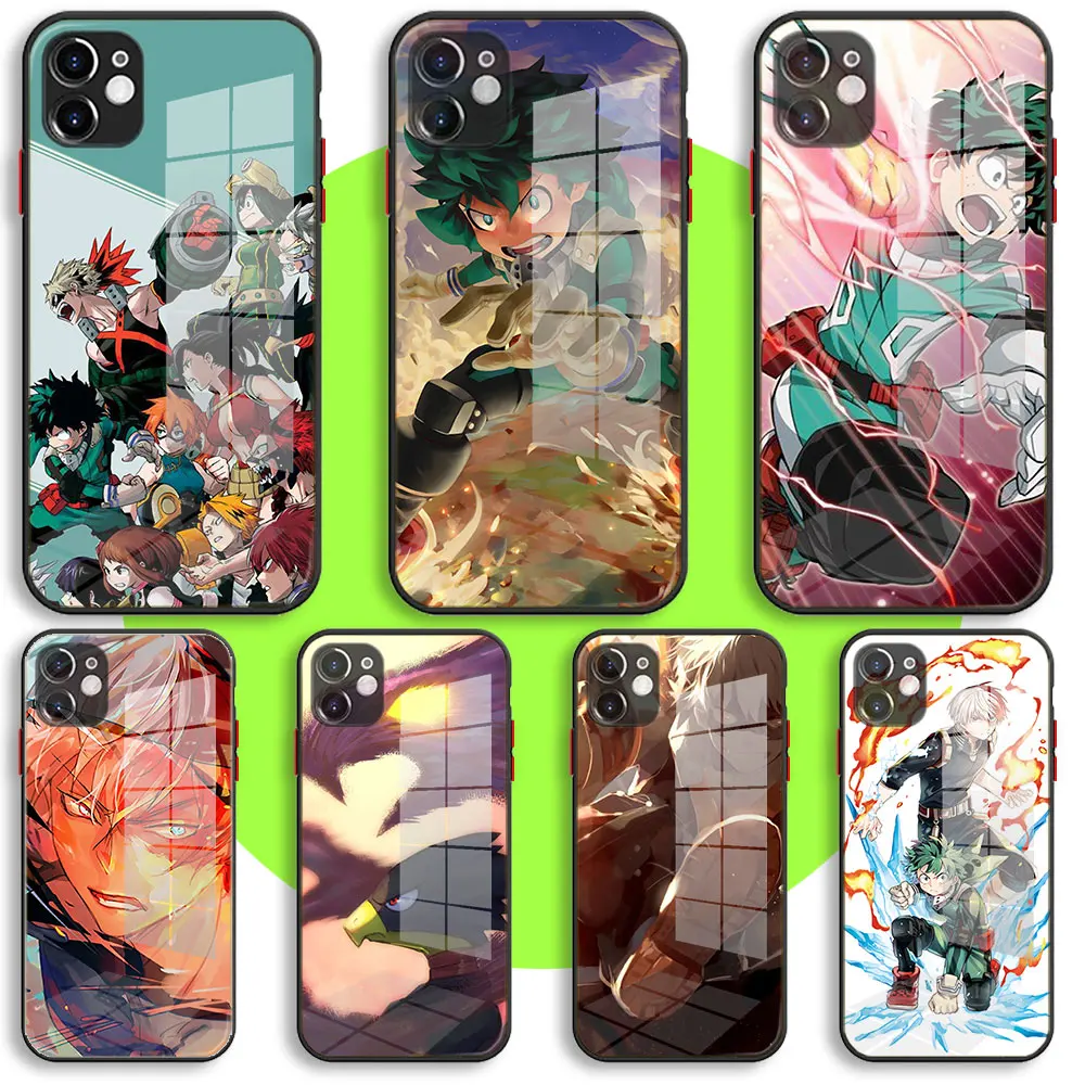 Liquid Tempered Glass Case For iPhone 13 11 12 Mini Pro Max XS XR X 7 8 6 Plus SE2 Silicone Cover Boku No Hero Academia