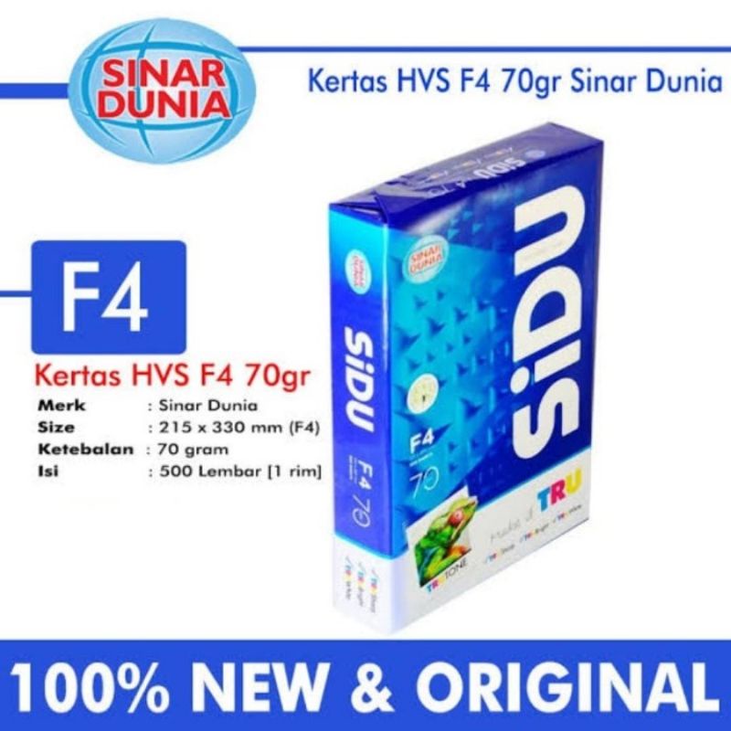 HVS F4/FOLIO/LEGAL KERTAS PRINT FOTOCOPY SIDU SINAR DUNIA
