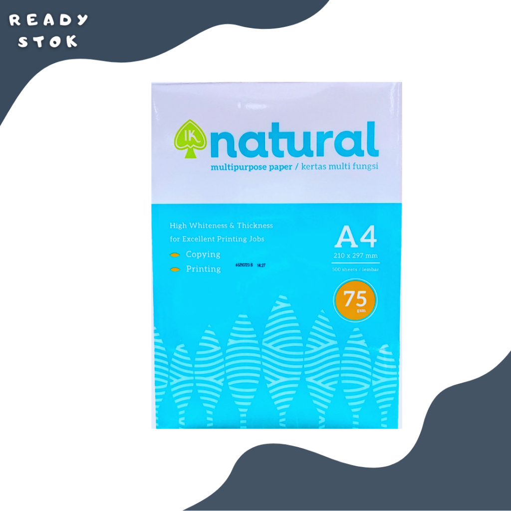 HVS NATURAL A4 75GSM / KERTAS HVS A4 75 GSM / HVS / KERTAS A4 / KERTAS KWARTO (RIM)