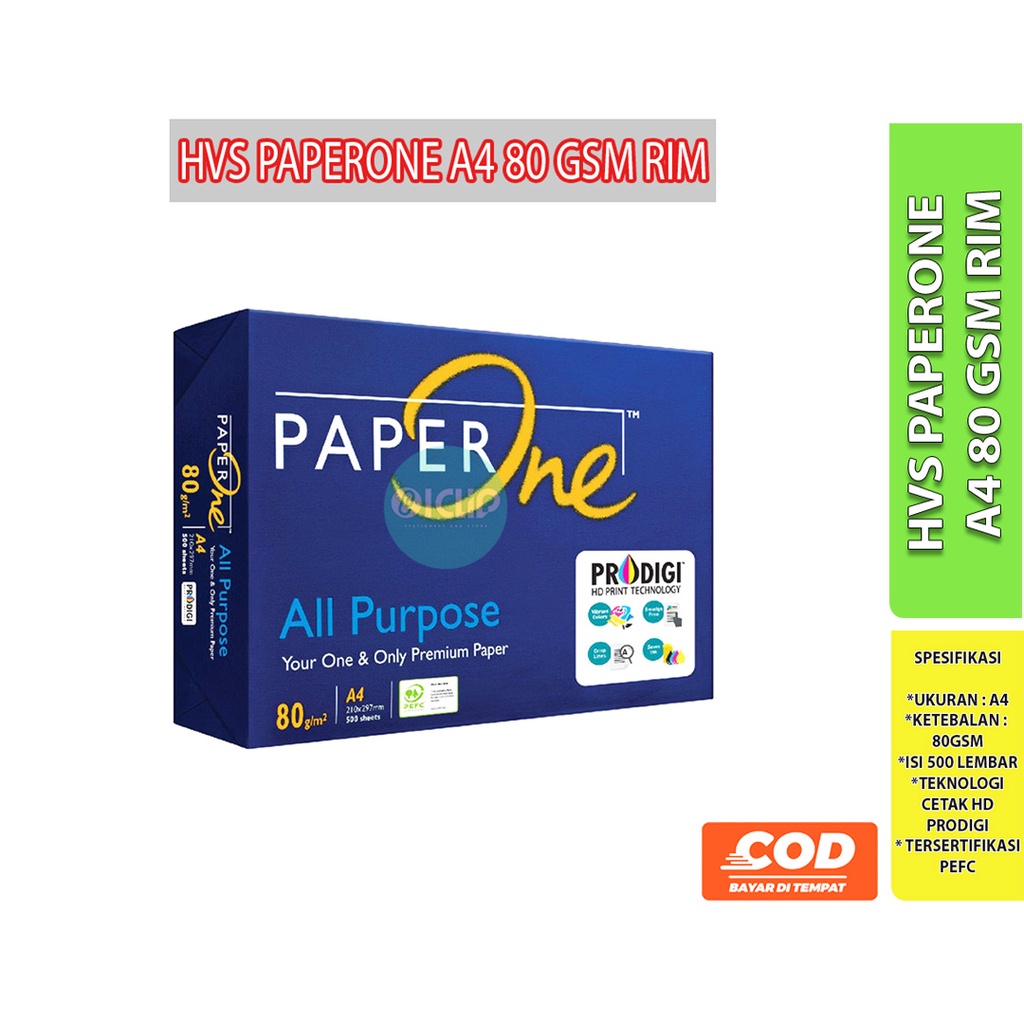 HVS PAPER ONE A4 80 GSM 1 RIM / KERTAS HVS KERTAS PRINT KERTAS FOTOKOPI A4 80GSM 1 RIM