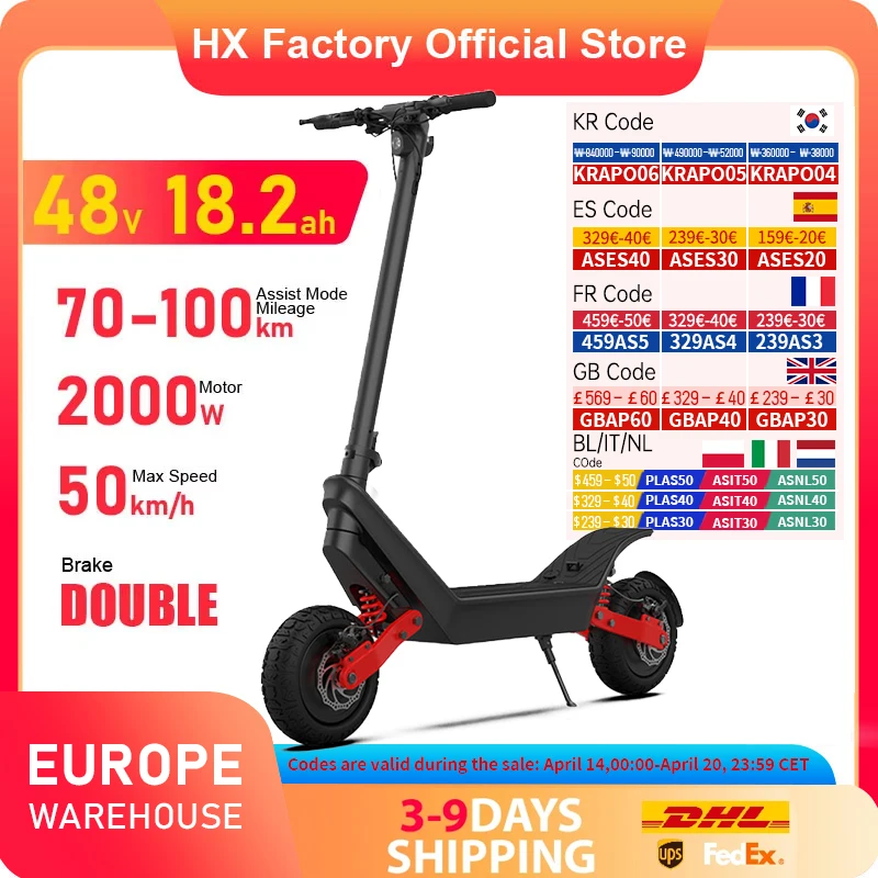 HX X10 18.2AH электрический самокат 2000 Вт 50 км/ч складной электрический самокат Kick E с двумя двигателями 11 дюймовый самокат для взрослых