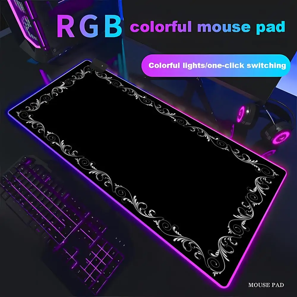 HYBXAXC Floral Pattern Black Mouse Pad Animation Games RGB HD Gamer Large LED Light XXL PC Computer pad Non-slip Decor