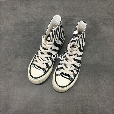 On highheeled canvas shoes womens zebra stripes Korean Harajuku Joker 2019 new shoes womens board shoes