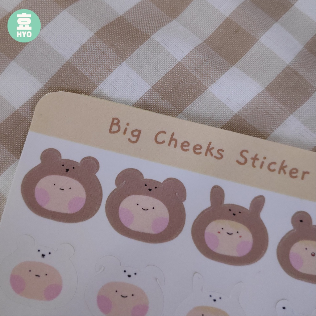 [HYO] 1 Sheets Big Cheeks Sticker Frog Bear Dog Rabbit