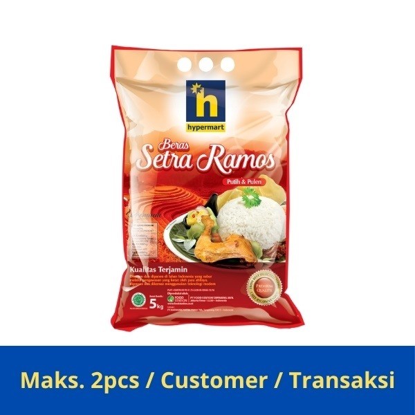 Hypermart Setra Ramos adalah beras yang berasal dari padi pilihan, dengan bentuk bulir yang panjang, dan cenderung ramping menjadikan beras ini tampak indah, panjang, putih, bersih. Beras ini cenderung bertekstur sedang, masih ada tekstur pulen, walaupun tingkat kepulenannya tidak sama dengan beras Setra Pulen maupun Sego Pulen. Dari sisi mutu, keamanan pangan, dan status kehalalannya tidak perlu diragukan lagi karena produk ini tersertifikasi baik dari sisi mutu, keamanan pangan, maupun kehalalannya