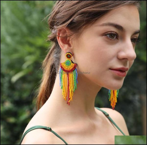 stud earrings jewelry s1769 bohemian fashion handwoven minority earring rainbow beaded a7djc2697111, Golden;silver
