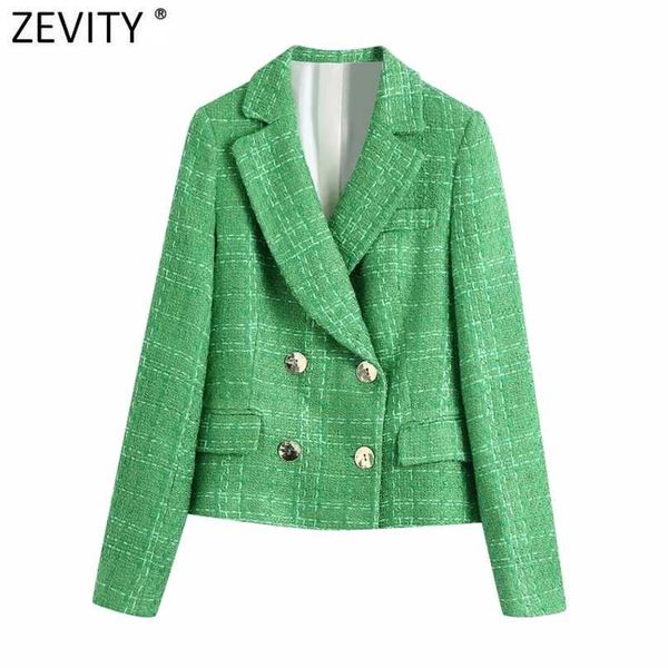 zevity women england style double breasted green tweed woolen blazer coat vintage female long sleeve chic suits ct695 211019, White;black