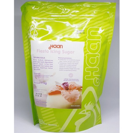 Icing sugar merk Fiesta dari Haan ini merupakan bubuk gula halus serba guna, dengan warna yang lebih putih, lebih halus dan tidak mudah menggumpal. Digunakan untuk campuran kue kering/ cookies, untuk taburan kue serta untuk dekorasi membuat royal icing atau gum paste.