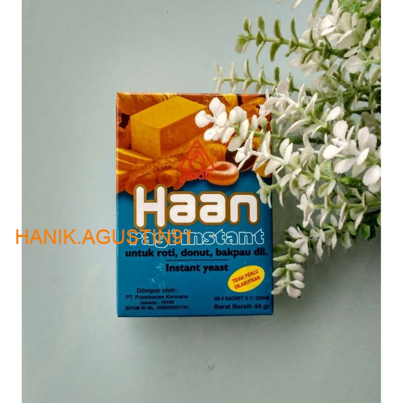 Haan Ragi Instant adalah ragi sangat sering digunakan untuk membuat roti. Ragi ini sangat praktis karena tidak perlu dilarutkan ketika akan dicampurkan ke adonan roti.