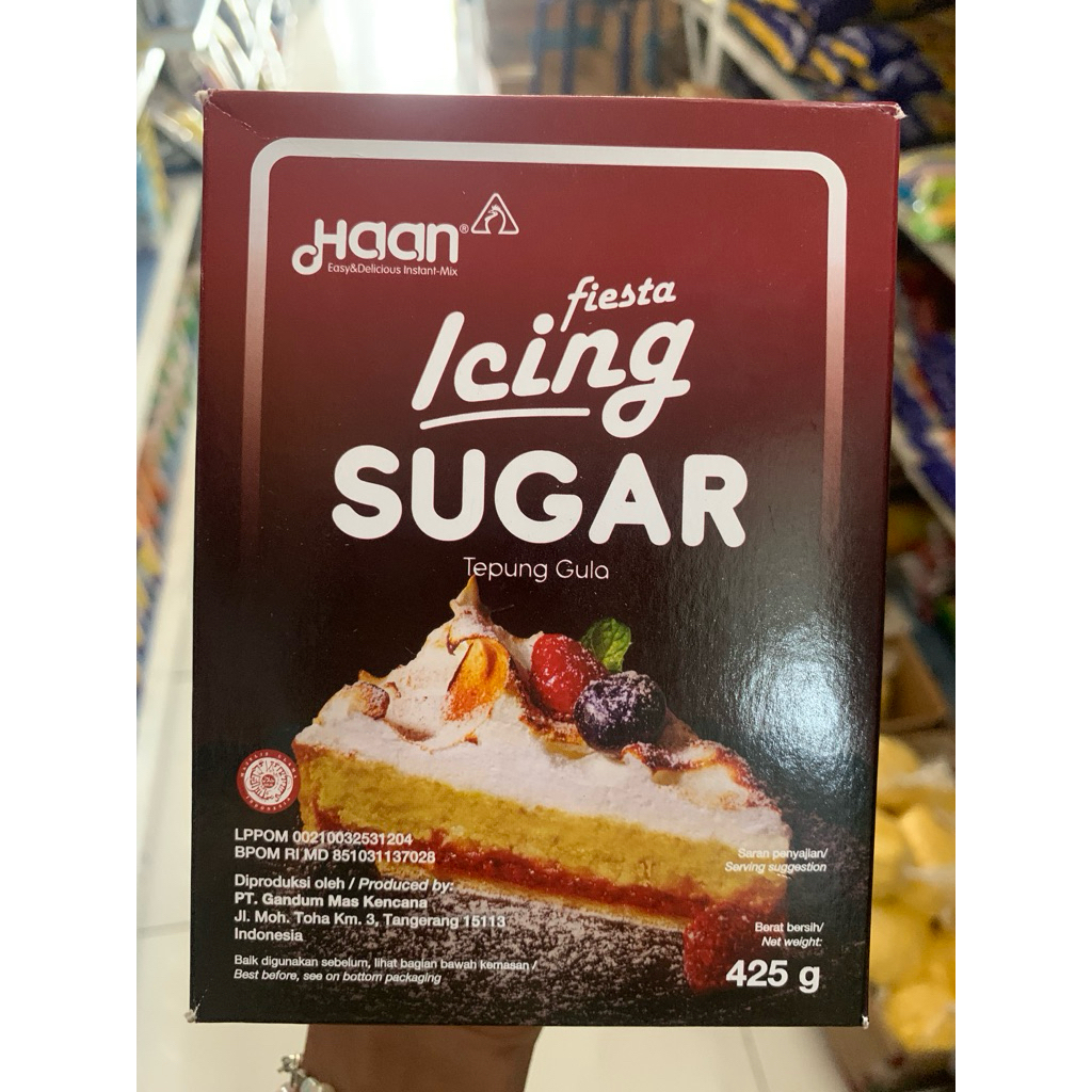 Haan Icing Sugar adalah gula halus atau gula bubuk yang diproduksi oleh Haan. Gula ini memiliki tekstur yang sangat halus dan digunakan untuk berbagai keperluan dekorasi dan pembuatan kue, terutama untuk membuat royal icing dan gum paste.