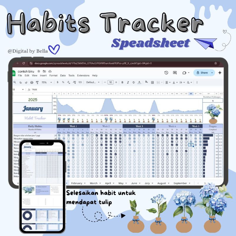 Produk kami berbeda dengan yang lain, habit tracker kami dilengkapi dengan template perbulan dari januari- Desember, dan terdapat halaman dashboard yang berisi progres pencapaian setipa bulannya.