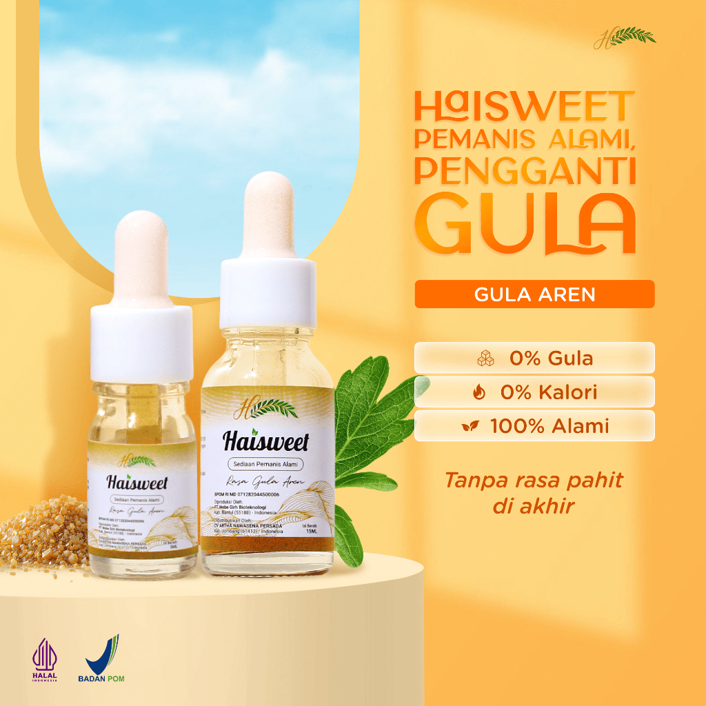 Manis gak harus bikin was-was. Haisweet hadir sebagai pemanis alami rendah kalori berbahan dasar stevia, cocok buat kamu yang ingin hidup sehat tanpa mengorbankan rasa.