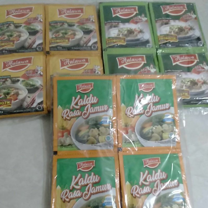 Kaldu bubuk probiotik Halawa kemasan 1 pack, ada 3 pilihan rasa : Sapi, Ayam dan Jamur.