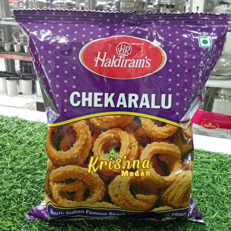 Haldiram Chekaralu adalah makanan ringan tradisional India Selatan yang terbuat dari tepung beras, urad dal, dan campuran rempah-rempah yang gurih. Bentuknya spiral renyah dan terasa seperti mentega, dengan tekstur ringan dan rasa kaya yang diperkaya dengan jintan dan wijen,Makanan ini cocok dinikmati sebagai camilan saat minum teh atau dibagikan saat acara-acara khusus.