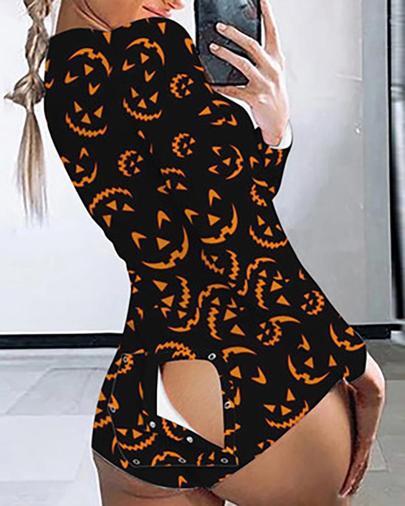 Halloween Graphic Print Long Sleeve Flap Design Romper, Style2
