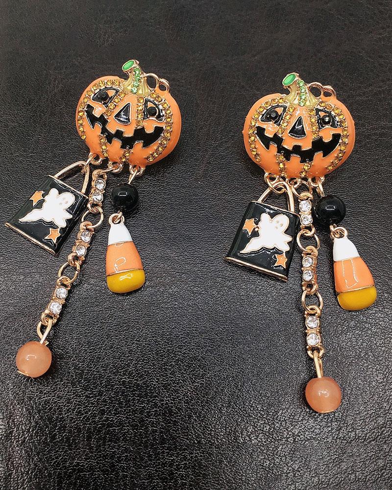 Halloween Pumpkin Graphic Pattern Rhinestone Decor Earrings, Yellow
