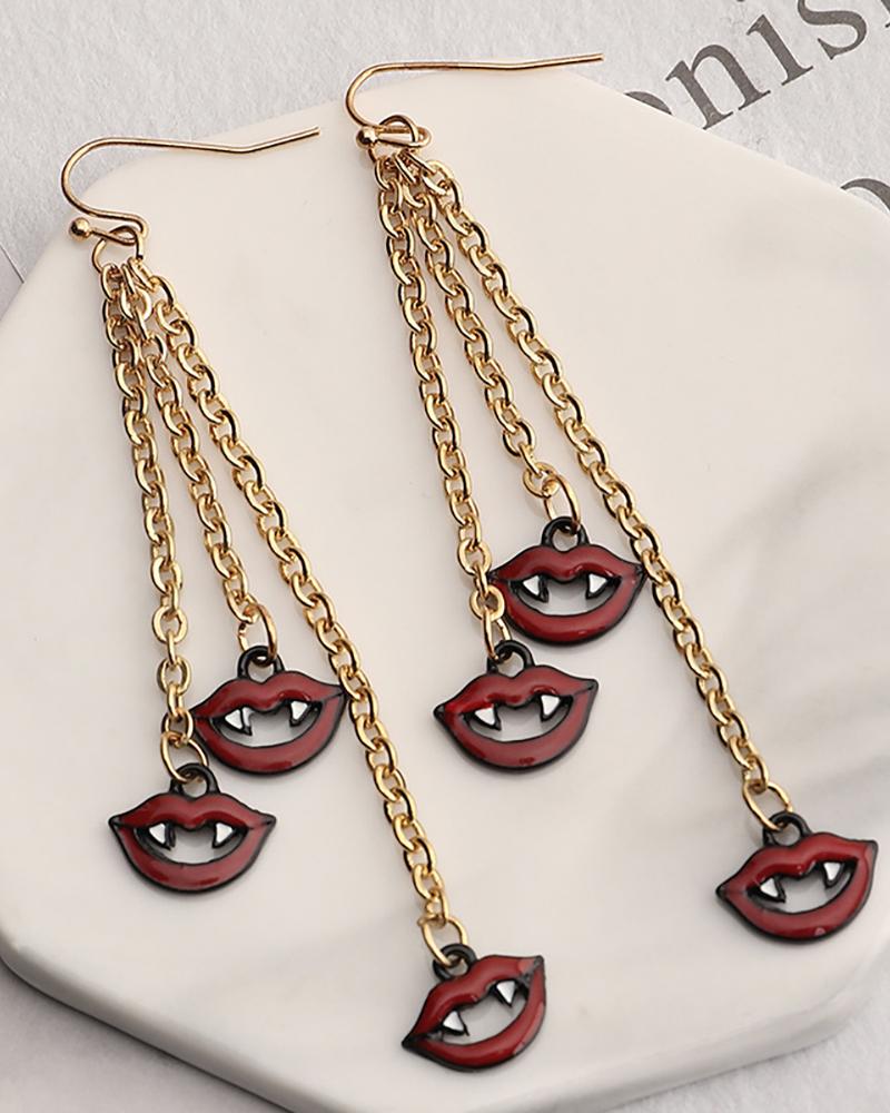 Halloween Pumpkin Pattern Chain Drop Earring, Red