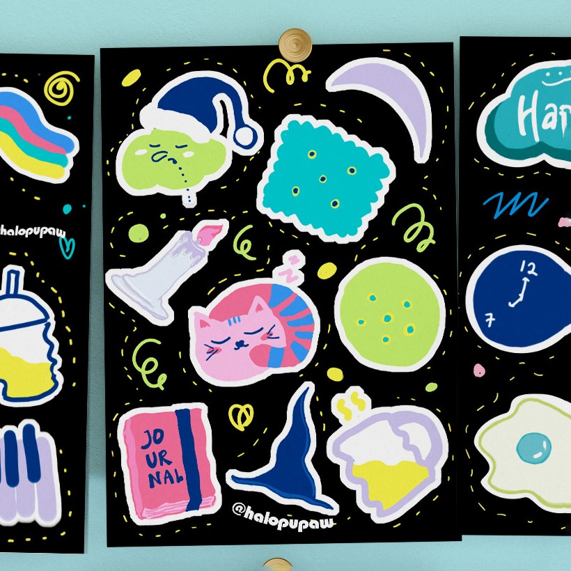 Sticker sets are now available in two designs! Stick them everywhere to put cuteness to everything in your life! Size: A5, Material: Vinyl doff stickers