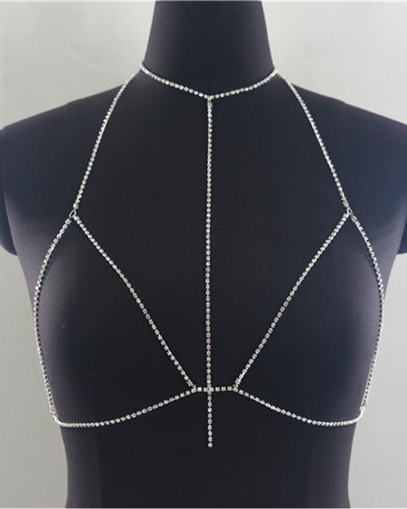 Halter Allover Rhinestone Body Chain, Silver