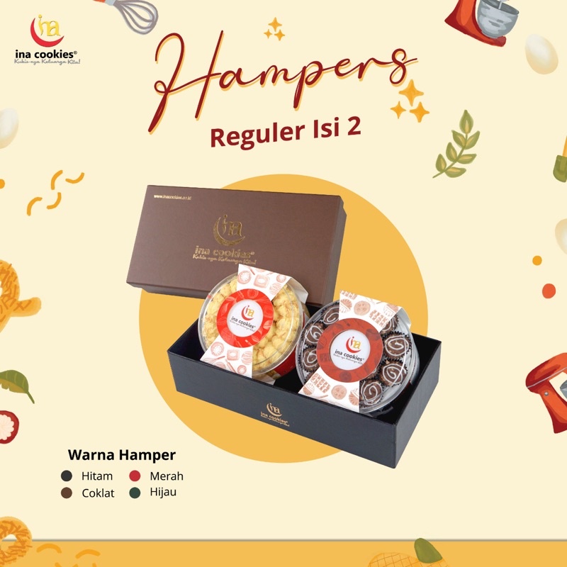 Bingung mo kasih hantaran apa ke keluarga..rekanan maupun teman..@inacookies_solo menyediakan beberapa pilihan hampers..salah satu nya hampers isi 2 reguler Ina Cookies..untuk variasi isian hampers bisa pilih yaa