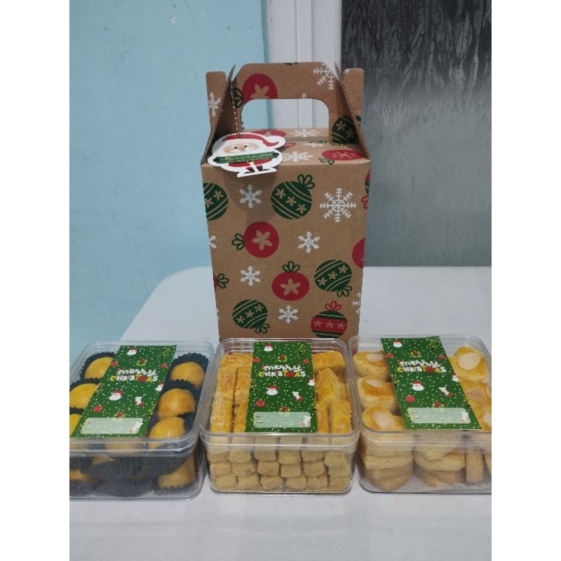 Hampers box motif isi 3 toples [email protected],kastangel,almond cookies,termsk hangtag/ucapan.