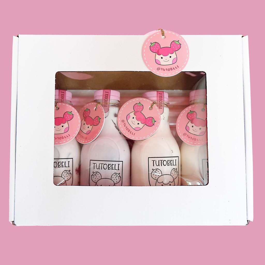 Tutubox ini muat untuk 4 Botol ya sudah dilengkapi dengan sedotan dan Kartu ucapan juga.
