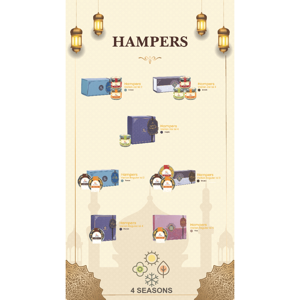 - H Jar isi 4 artinya Hampers Varian Jar isi 4 (mix Varian Asin, Manis, Healthy, Fruity dan Cokelat)