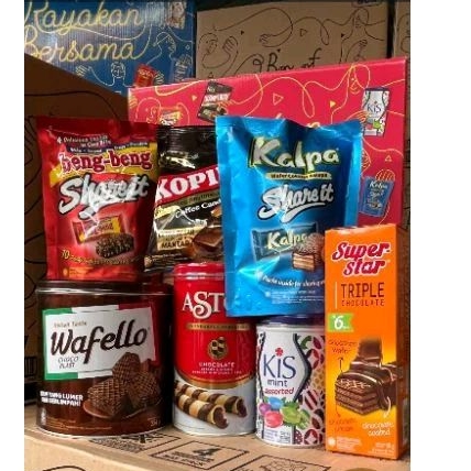 Berbagi Hampers saat hari² istimewa, persembahan dr Mayora. Isian : wafello wafer kaleng, astor kaleng, permen kiss kaleng, kopiko, bengbeng pouch, kalpa pouch, wafer superstar.