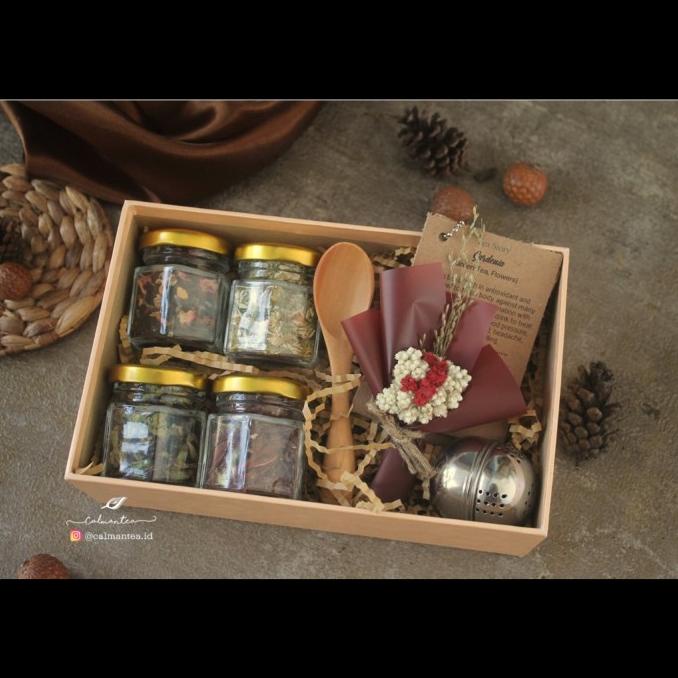 Hampers box artisan tea dan tisane dengan free mini bouquet yang cantik.