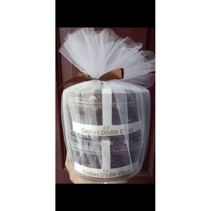 Paket 2 jar Cookies Double Choco 250gr + hiasan kain tille + free custom greeting card