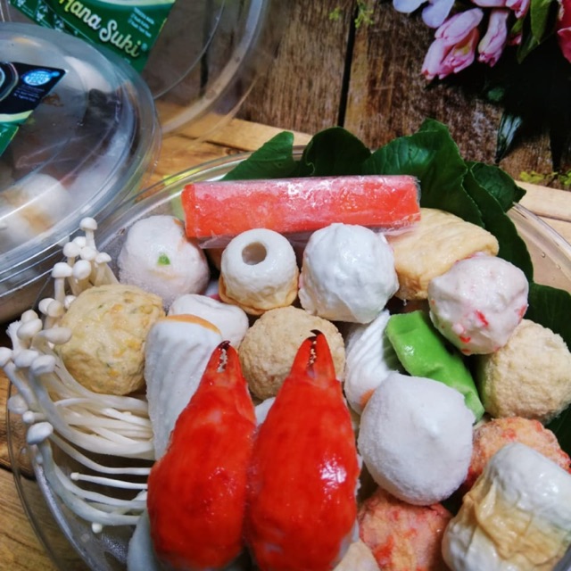 Berisi 15 pcs aneka olahan seafood kemasan kecil. Crab stick, chikuwa, baso ikan, cheese dumpling, tofu dan fish roll. Atau olahan lainnya tergantung stok yang ada. Enak, praktis dan halal.