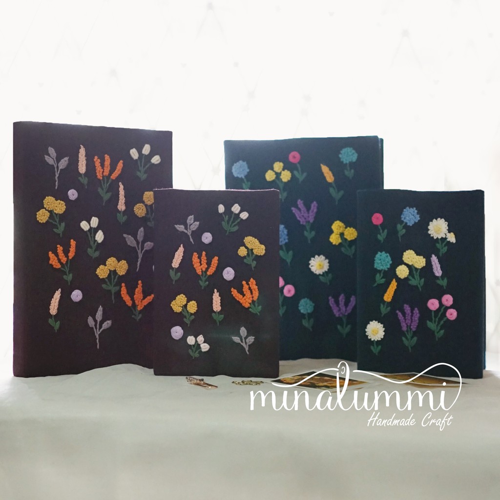 - Hand-Embroidery Book cover: covernya bisa lepas pasang jadi bisa ganti isinya aja atau dicuci/dibersihin kalau ngerasa kotor.